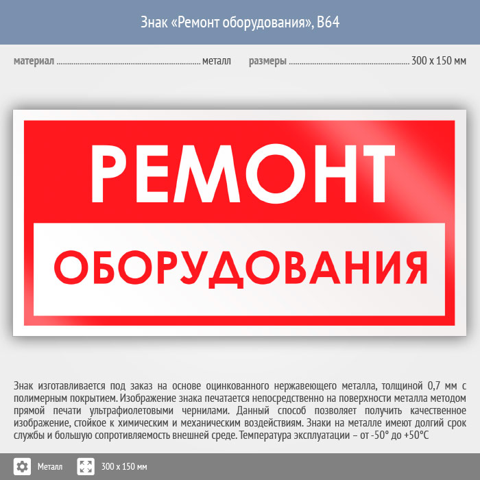 Знак «Ремонт оборудования», B64 (металл, 300х150 мм) в Волгограде купить