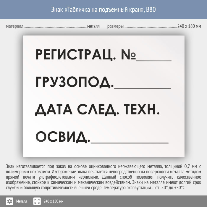 Знак «Табличка на подъемный кран», B80 (металл, 240х180 мм) в Волгограде купить