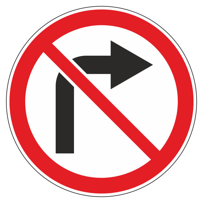 Дорожный знак 3.18.1 «Поворот направо запрещен» (металл 0,8 мм, II типоразмер: диаметр 700 мм, С/О пленка: тип В алмазная) в Волгограде купить