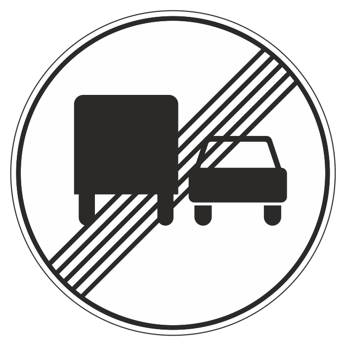 Дорожный знак 3.23 «Конец зоны запрещения обгона грузовым автомобилям» (металл 0,8 мм, III типоразмер: диаметр 900 мм, С/О пленка: тип А коммерческая) в Волгограде купить