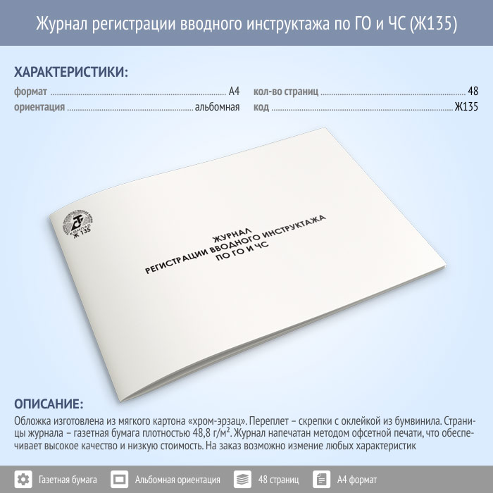 Журнал регистрации вводного инструктажа по ГО и ЧС (48 стр., Ж135) в Волгограде купить