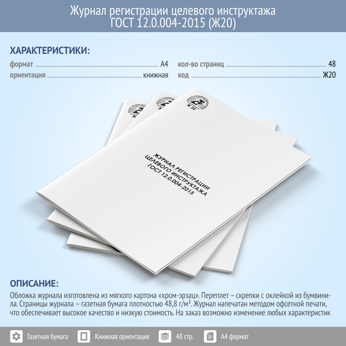 Журнал регистрации целевого инструктажа (ГОСТ 12.0.004-2015) (Ж20) в Волгограде купить
