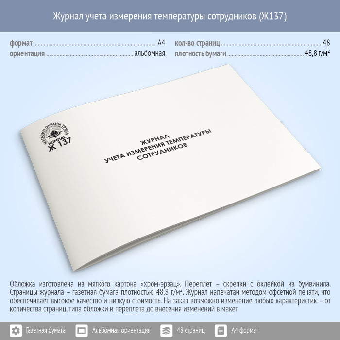 Журнал учета измерения температуры сотрудников (48 стр., Ж137) в Волгограде купить