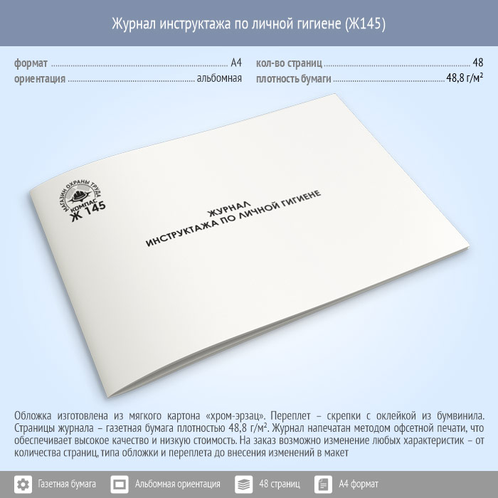 Журнал инструктажа по личной гигиене (48 стр., Ж145) в Волгограде купить