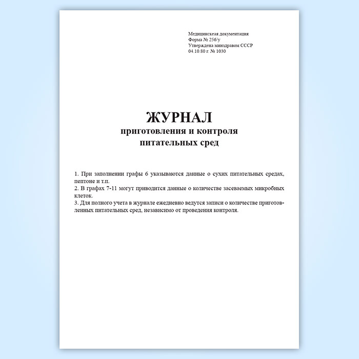 Журнал приготовления и контроля питательных сред (форма 256/у) в Волгограде купить