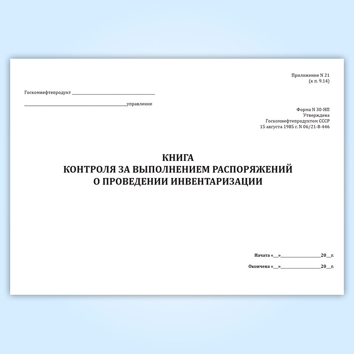 Книга контроля за выполнением распоряжений о проведении инвентаризации (форма № 30-НП) в Волгограде купить