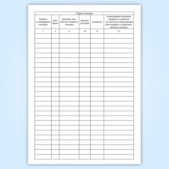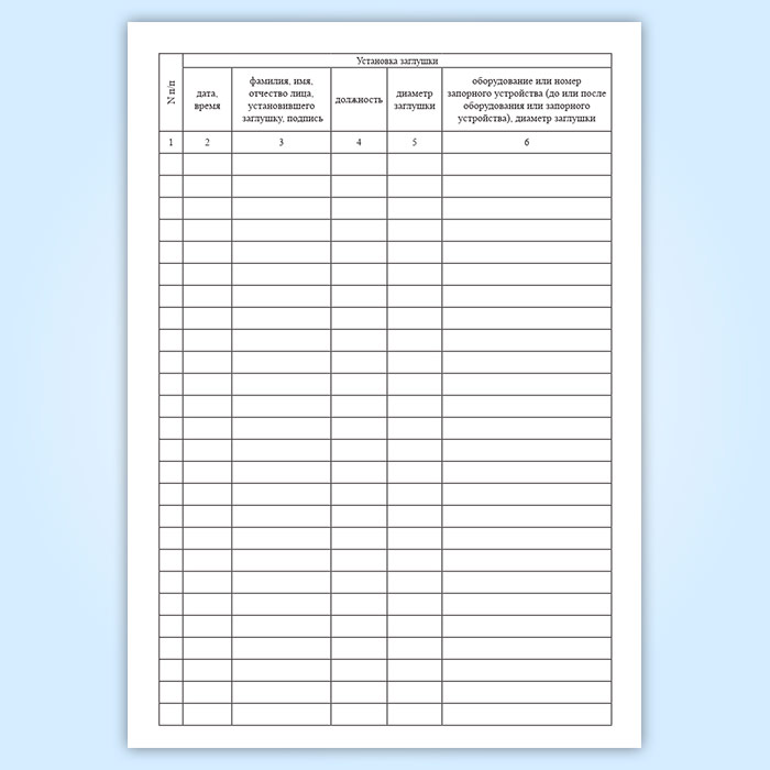 Журнал установки и снятия заглушек в Волгограде купить