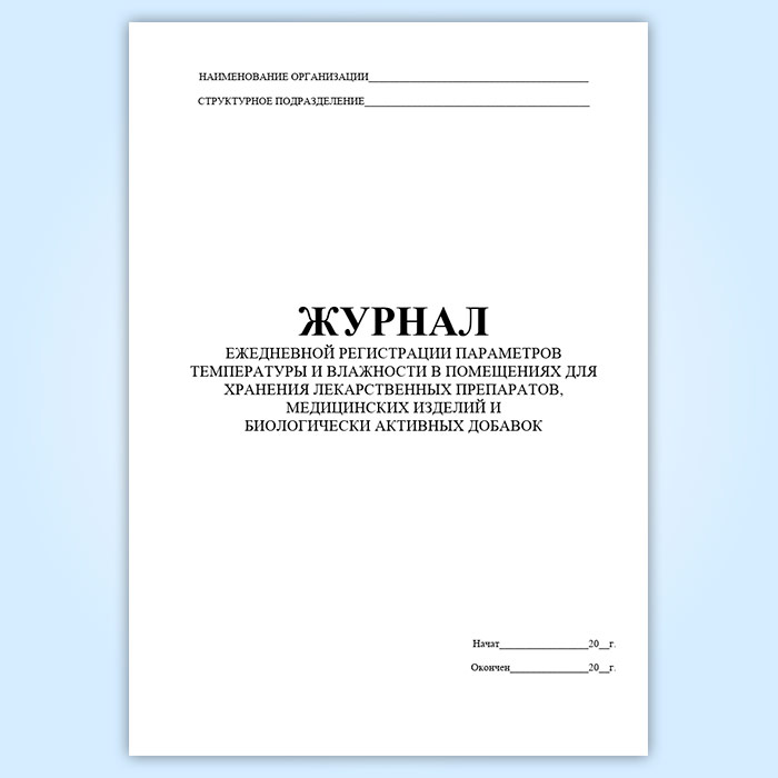 Журнал ежедневной регистрации параметров температуры и влажности в помещениях для хранения лекарственных препаратов, медицинских изделий и биологически активных добавок в Волгограде купить