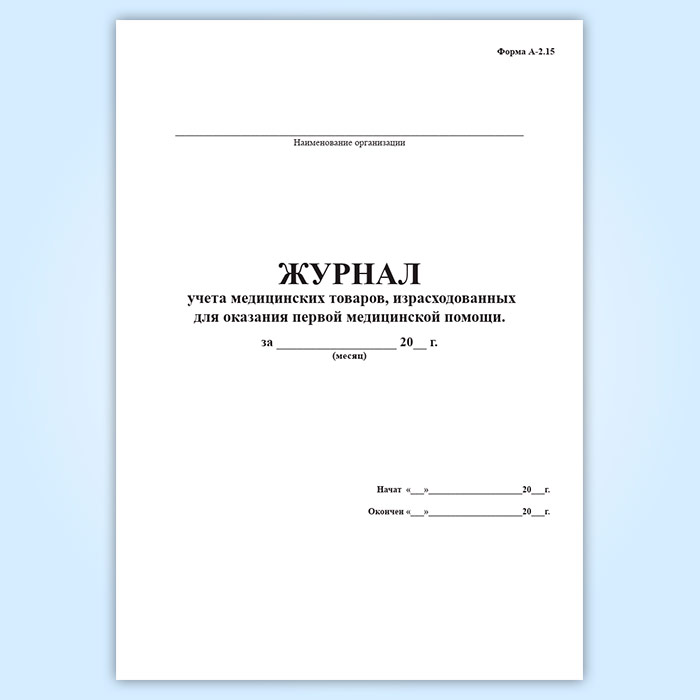 Журнал учета медицинских товаров, израсходованных для оказания первой медицинской помощи (форма А-2.15) в Волгограде купить