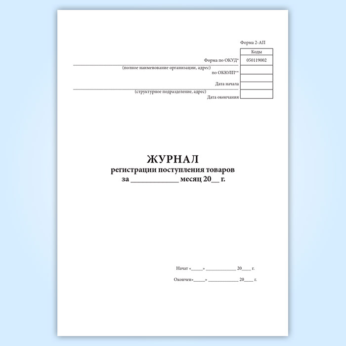 Журнал регистрации поступления товаров (форма 2-АП) в Волгограде купить