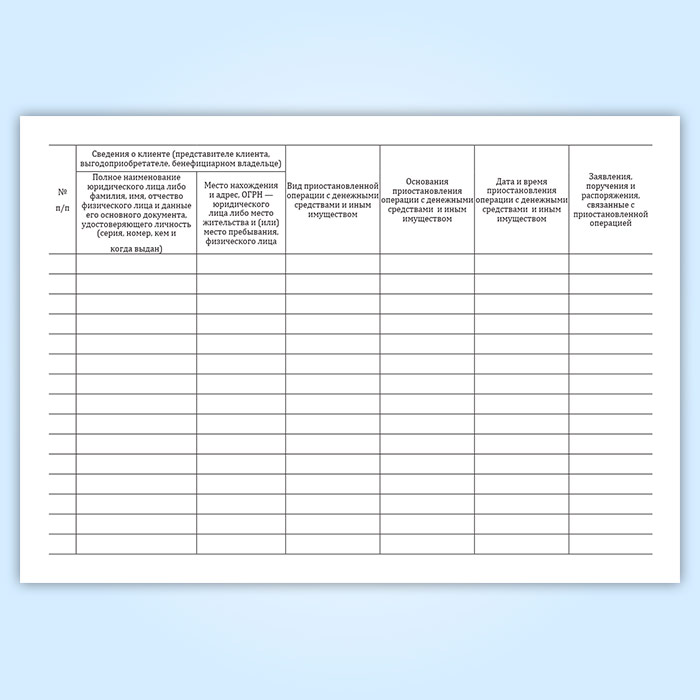 Журнал учета приостановленных операций с денежными средствами и иным имуществом клиента в Волгограде купить