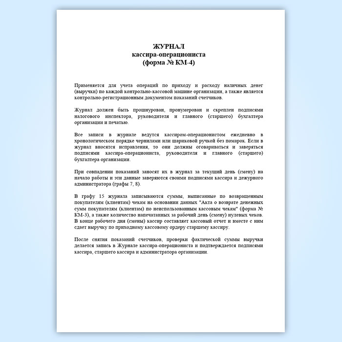 Журнал кассира-операциониста, вертикальный (форма № КМ-4) в Волгограде купить