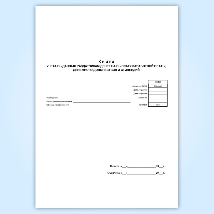 Книга учета выданных раздатчикам денег на выплату заработной платы, денежного довольствия и стипендий (форма по ОКУД 0504046) в Волгограде купить