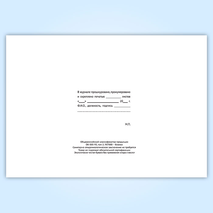 Вы получаете печатную продукцию прошнурованной и c местом для вашей печати в соответствии с действующими нормативными документами: