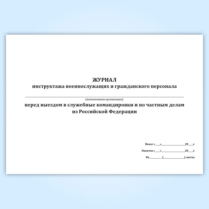 Журнал инструктажа военнослужащих и гражданского персонала перед выездом в служебные командировки и по частным делам из Российской Федерации в Волгограде купить