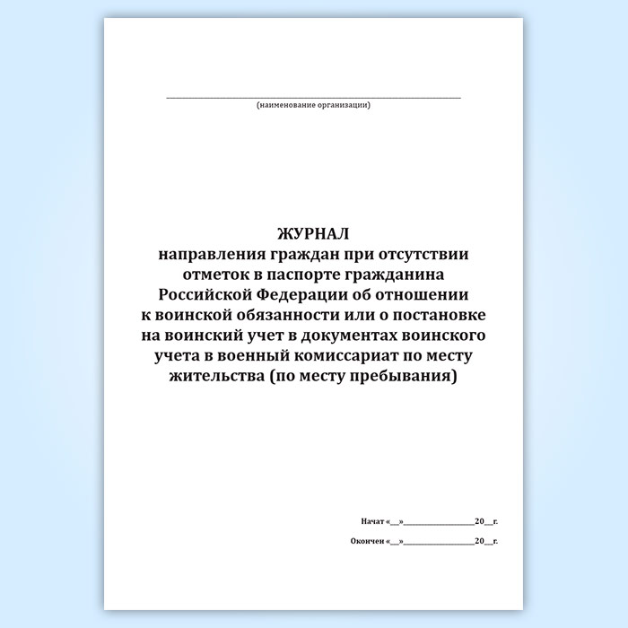 Журнал направления граждан при отсутствии отметок в паспорте гражданина Российской Федерации об отношении к воинской обязанности или о постановке на воинский учет в документах воинского учета в военный комиссариат по месту жительства (по месту пребывания) в Волгограде купить