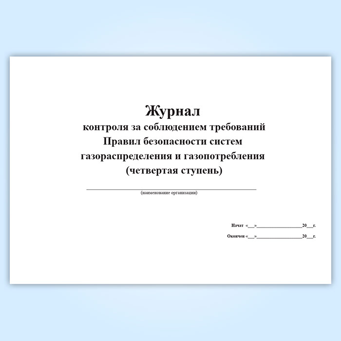 Журнал контроля за соблюдением требований Правил безопасности систем газораспределения и газопотребления (четвертая ступень) в Волгограде купить