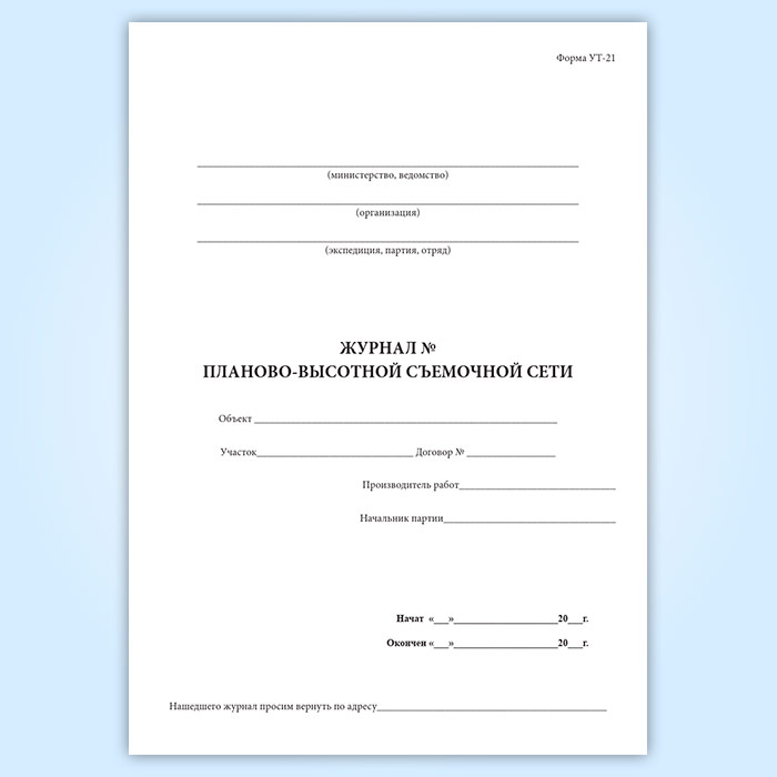 Журнал планово-высотной съемочной сети (форма УТ-21) в Волгограде купить