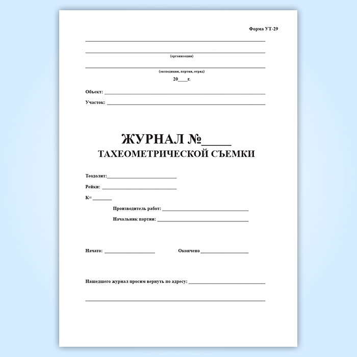 Журнал тахеометрической съемки (форма УТ-29) в Волгограде купить