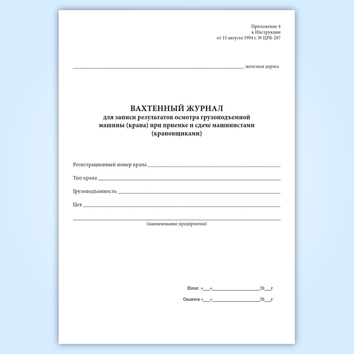 Вахтенный журнал для записи результатов осмотра грузоподъемной машины (крана) при приемке и сдаче машинистами (крановщиками) в Волгограде купить