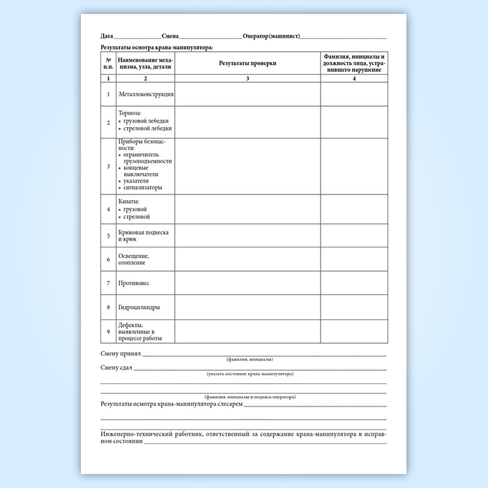 Вахтенный журнал приема-сдачи смен машинистами крана-манипулятора в Волгограде купить