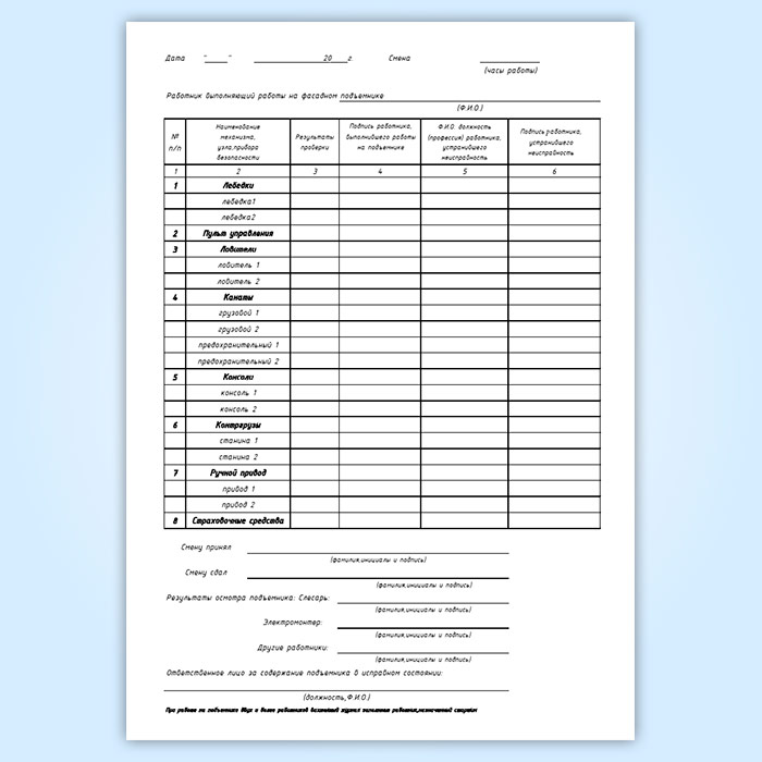 Вахтенный журнал фасадного двухподвесного подъемника в Волгограде купить