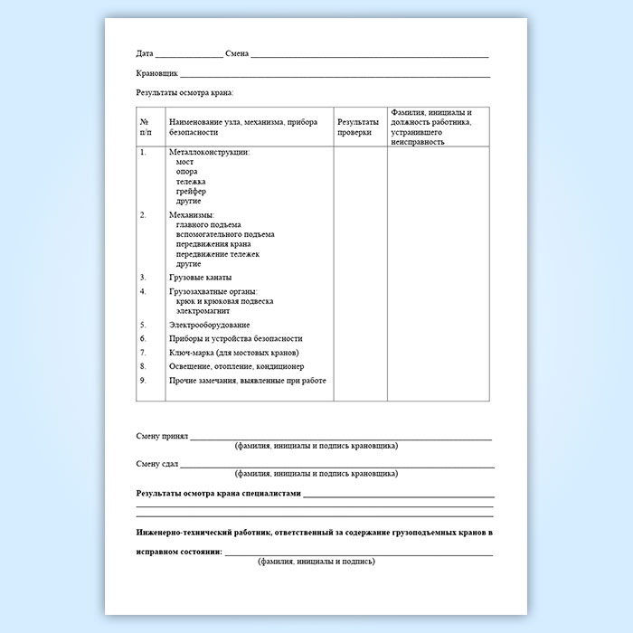 Вахтенный журнал крановщика (кранов мостового типа) в Волгограде купить