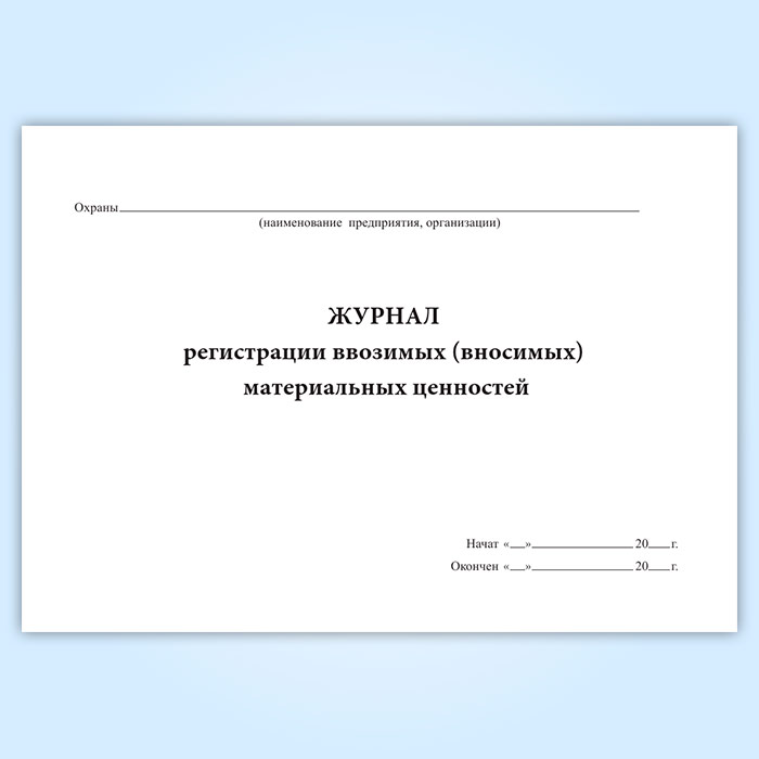 Журнал регистрации ввозимых (вносимых) материальных ценностей в Волгограде купить