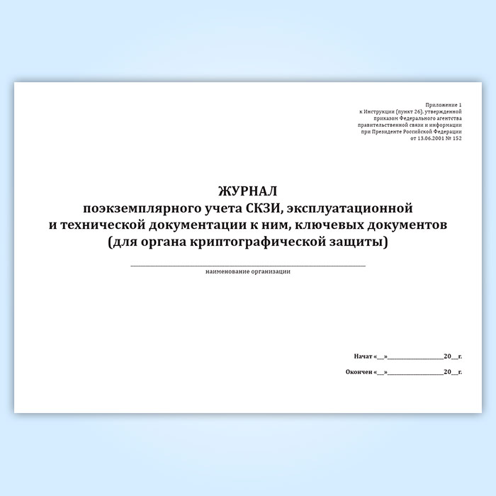Журнал поэкземплярного учета СКЗИ, эксплуатационной и технической документации к ним, ключевых документов (для органа криптографической защиты) в Волгограде купить