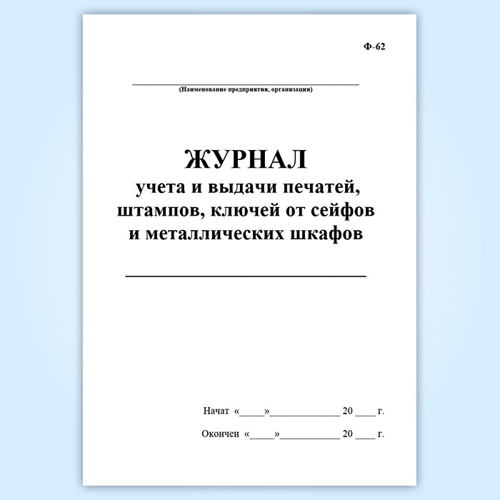 Журнал учета и выдачи печатей, штампов, ключей от сейфов и металлических шкафов (Ф-62) в Волгограде купить
