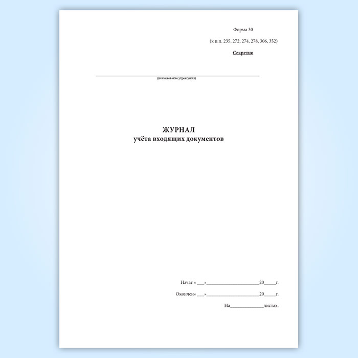 Журнал учета входящих документов (форма № 30) в Волгограде купить