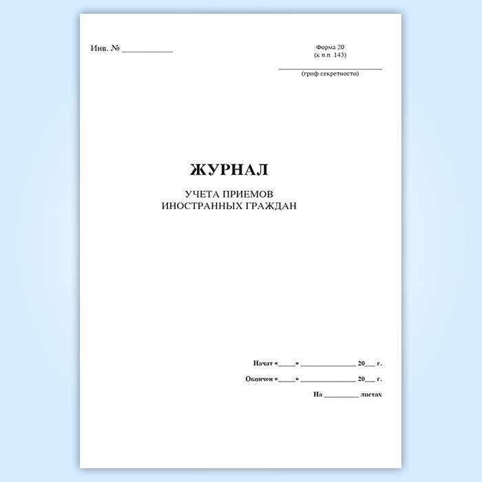 Журнал учета приемов иностранных граждан (форма 20) в Волгограде купить