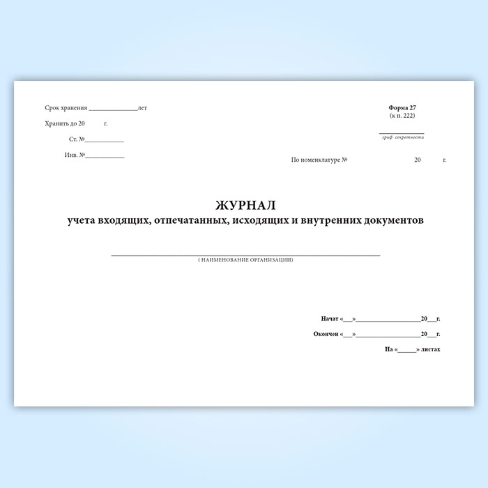 Журнал учета входящих, отпечатанных, исходящих и внутренних документов (горизонтальный) в Волгограде купить