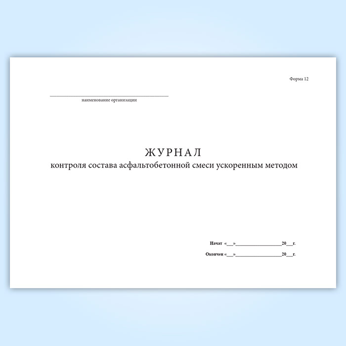 Журнал контроля состава асфальтобетонной смеси ускоренным методом (форма 12) в Волгограде купить