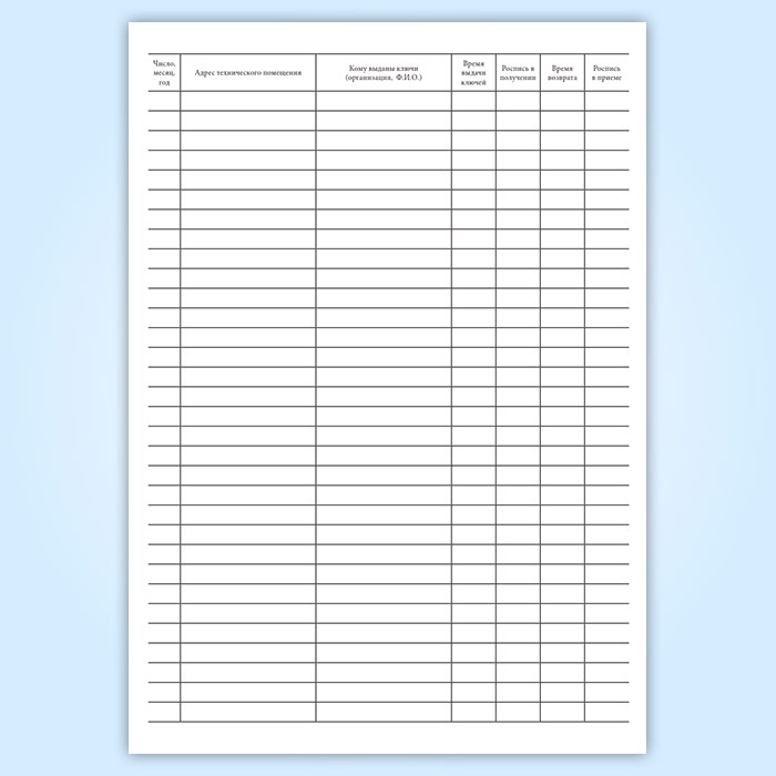 Журнал учета выдачи ключей от технических помещений, контролируемых ОДС в Волгограде купить