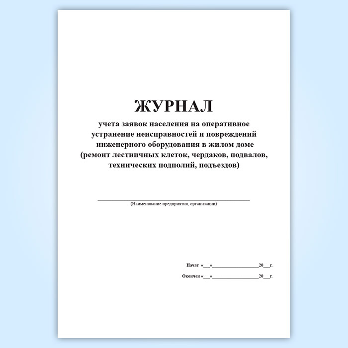 Журнал учета заявок населения на оперативное устранение неисправностей и повреждений инженерного оборудования в жилом доме ремонт лестничных клеток, чердаков, подвалов, технических подполий, подъездов в Волгограде купить