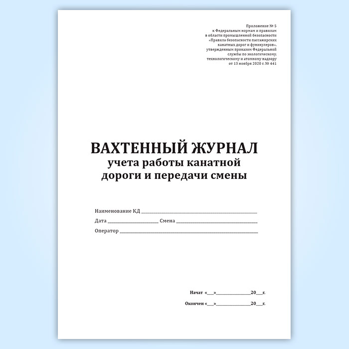 Вахтенный журнал учета работы канатной дороги и передачи смены в Волгограде купить