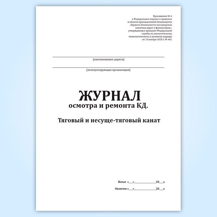 Журнал осмотра и ремонта канатной дороги. Тяговый и несуще-тяговый канат (форма № 2) в Волгограде купить