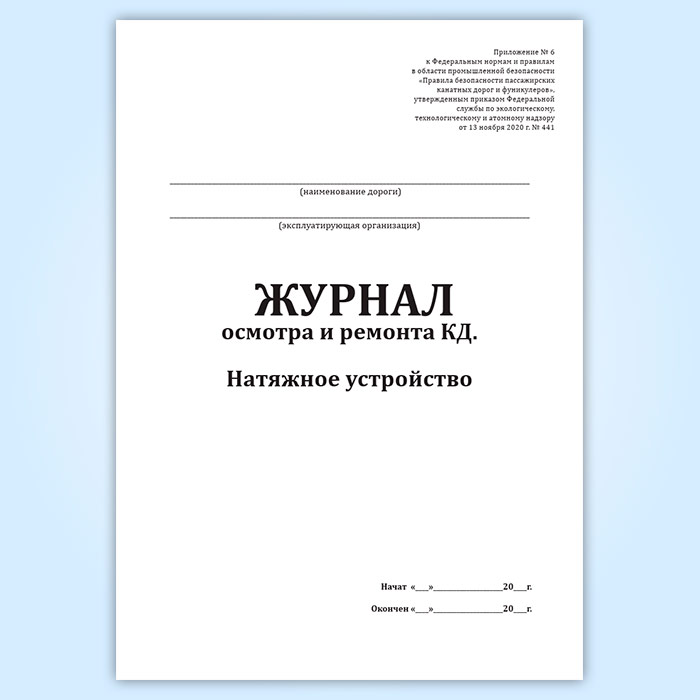 Журнал осмотра и ремонта канатной дороги. Натяжное устройство (форма № 5) в Волгограде купить