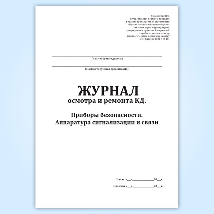 Журнал осмотра и ремонта канатной дороги. Приборы безопасности. Аппаратура сигнализации и связи (форма № 9) в Волгограде купить