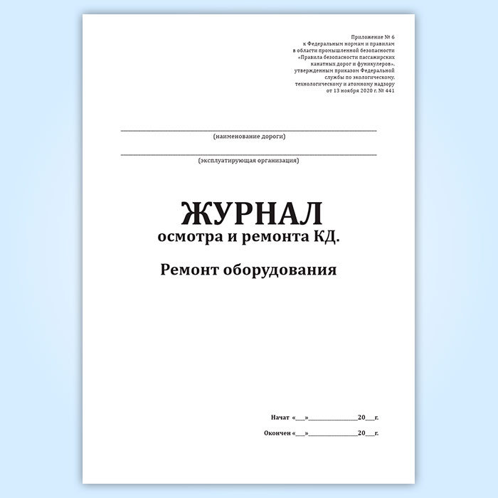 Журнал осмотра и ремонта канатной дороги. Ремонт оборудования (форма № 10) в Волгограде купить