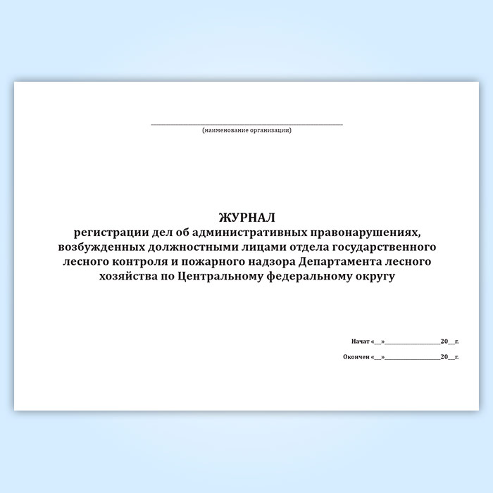 Журнал регистрации дел об административных правонарушениях, возбужденных должностными лицами отдела государственного лесного контроля и пожарного надзора Департамента лесного хозяйства по Центральному федеральному округу в Волгограде купить