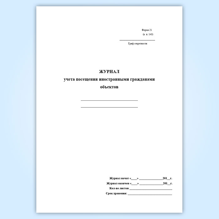 Журнал учета посещения иностранными гражданами объектов (форма 21) в Волгограде купить