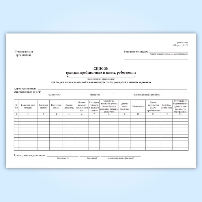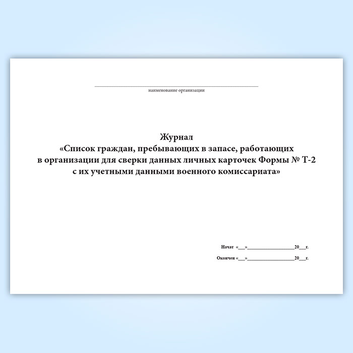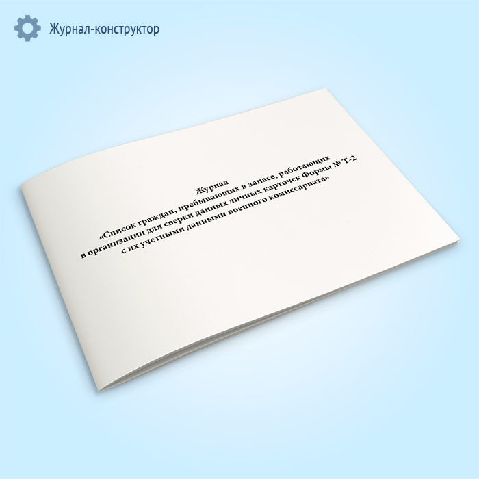 Журнал «Список граждан, пребывающих в запасе, работающих в организации для сверки данных личных карточек Формы № Т-2 с их учетными данными военного комиссариата» в Волгограде купить