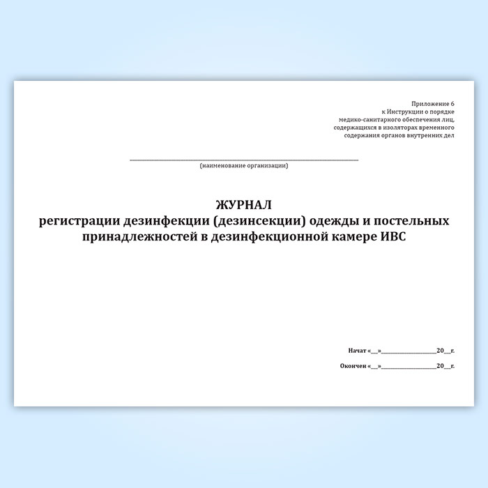 Журнал регистрации дезинфекции (дезинсекции) одежды и постельных принадлежностей в дезинфекционной камере ИВС в Волгограде купить
