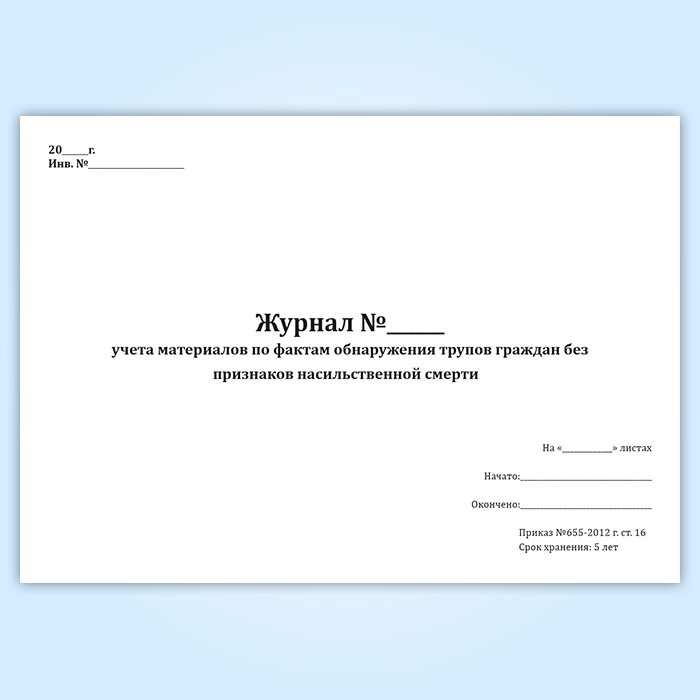 Журнал учета материалов по фактам обнаружения трупов граждан без признаков насильственной смерти в Волгограде купить