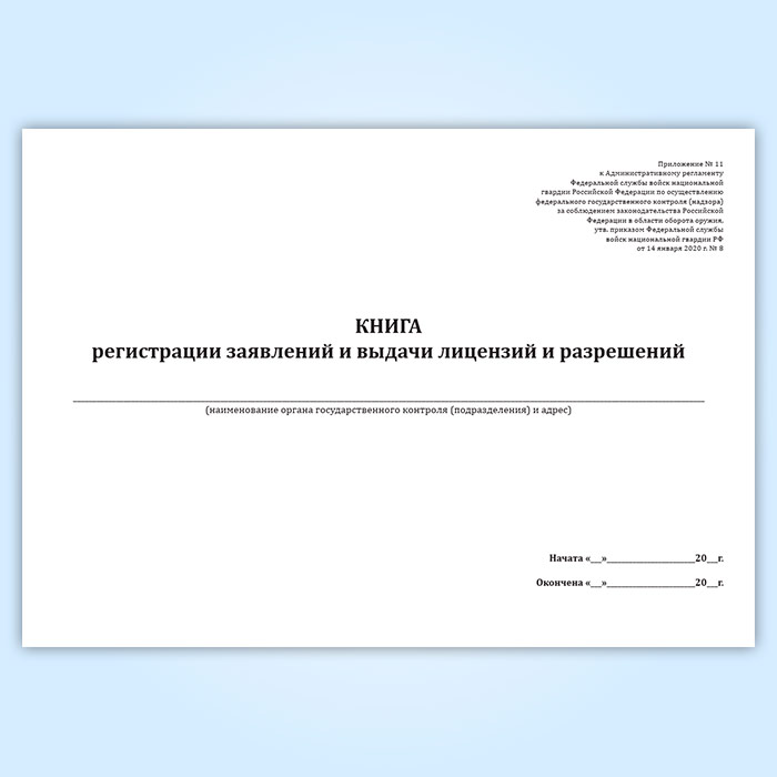 Книга регистрации заявлений и выдачи лицензий и разрешений (Приказ Росгвардии от 14.01.2020 N 8) в Волгограде купить