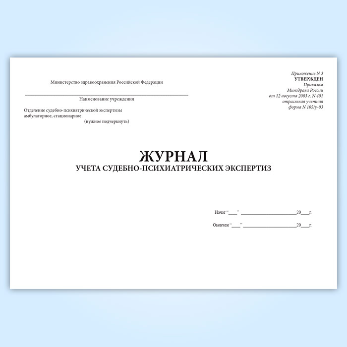 Журнал учета судебно-психиатрических экспертиз (форма 105/у-03) в Волгограде купить