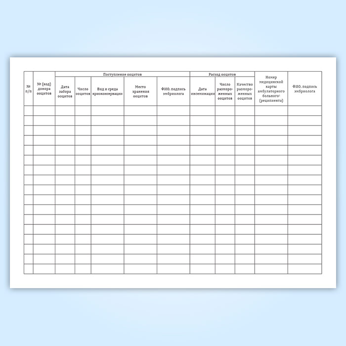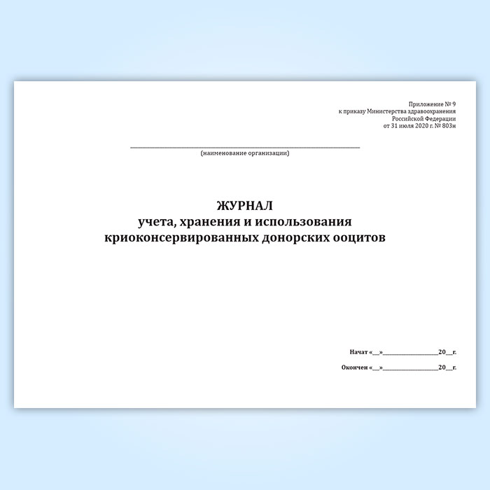 Журнал учета, хранения и использования криоконсервированных донорских ооцитов в Волгограде купить