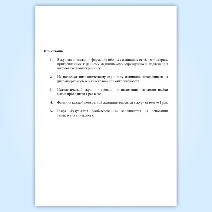 Журнал учета цитологического скрининга женщин по выявлению патологии шейки матки в Волгограде купить